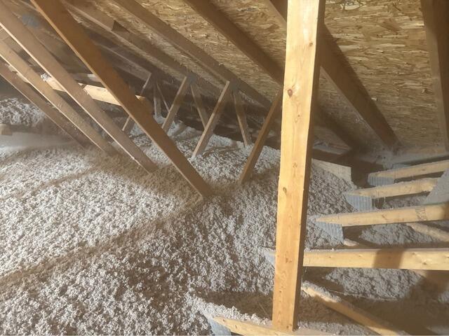 Remove And Dispose Of Existing Insulation. Attic is prepared for installation of fresh, clean insulation. Our team air sealed and insulated Scuttle Cover, sealed chimney chase with metal flashing, fire caulk and wrapped with rock wool sleeve. Air sealed with Zypfoam all penetrations. Installed SilverGlo™ on wall and between floor joists as needed and they also applied Trusoft cellulose to the attic floor