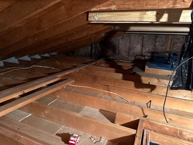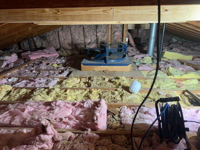 Our team removed and sanitized rodent-contaminated insulation, thoroughly disinfected the attic, and sealed air leaks throughout the attic floor. We then upgraded the insulation system, installed an insulated scuttle cover, sealed attic penetrations and top plates, and improved attic access so the space could be used safely and effectively.